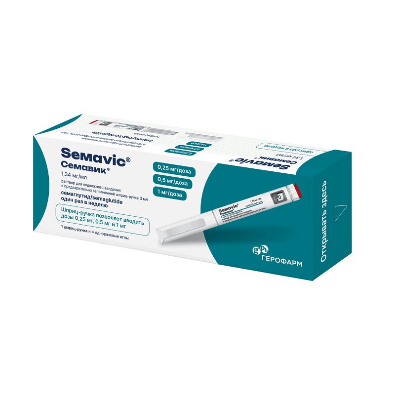 Семавик 1,34 мг/мл раствор для подкожного введения 0,25/0,5/1 мг/доза шприц-ручка 3 мл 1 шт + одноразовые иглы 9 шт