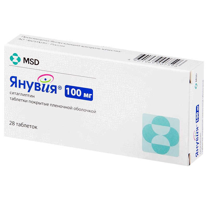 Янувия 100 мг таблетки покрытые пленочной оболочкой 28 шт