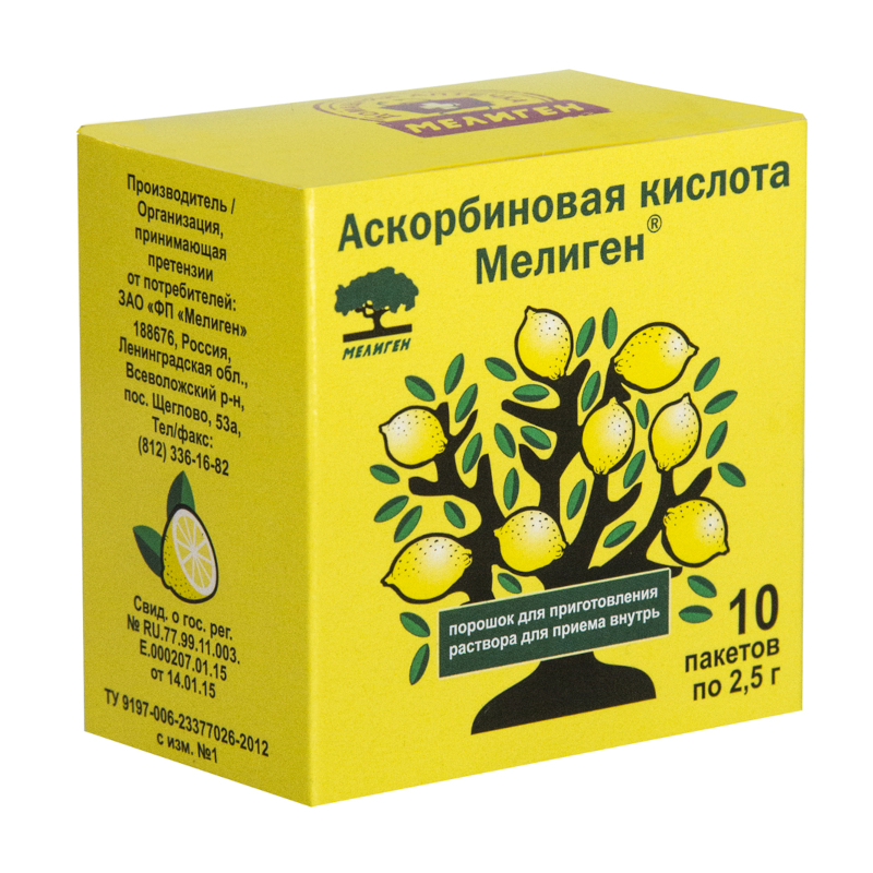 аналоги Аскорбиновая кислотаИнструкция по применению Аскорбиновая кислота Мелиген порошок для приготовления раствора 2,5 г 1 шт