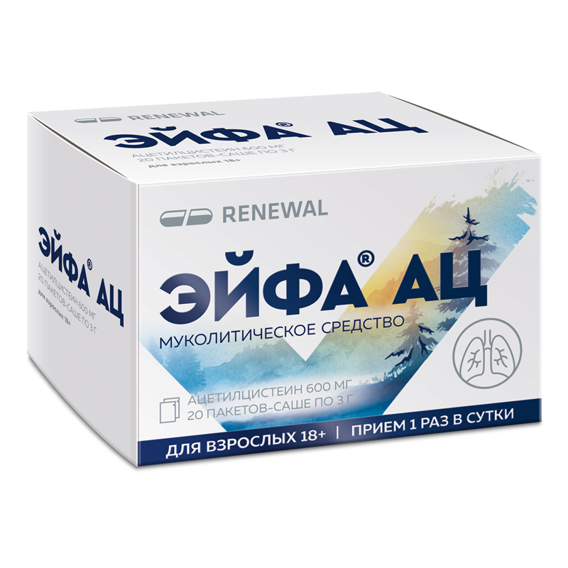 Эйфа АЦ 600 мг – современный препарат при кашле, насморке и отите для взрослых с 18 лет.