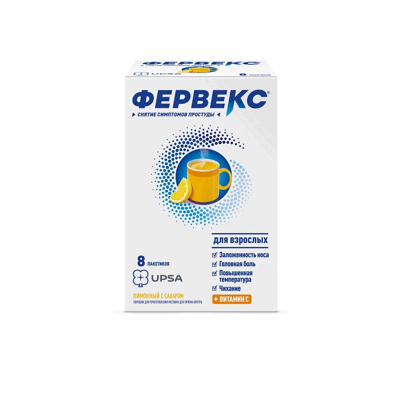 Инструкция по применению Фервекс порошок для приготовления раствора Лимон без сахара 8 шт