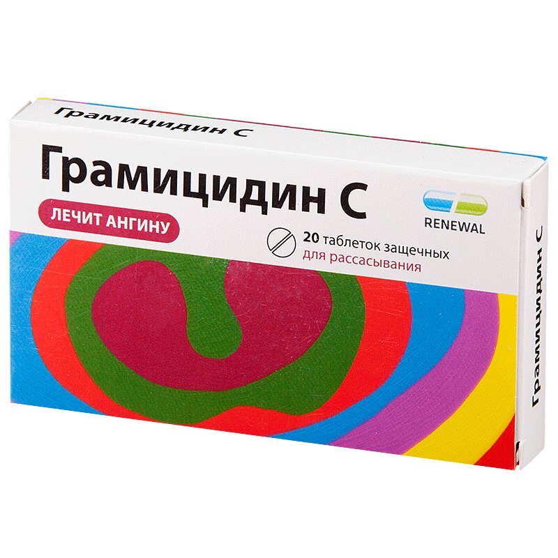 Инструкция по применению Грамицидин С Реневал 1,5 мг таблетки для рассасывания 20 шт