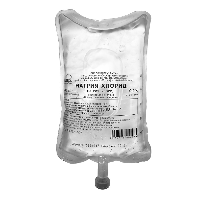 активное вещество: натрия хлорид - 9 г,