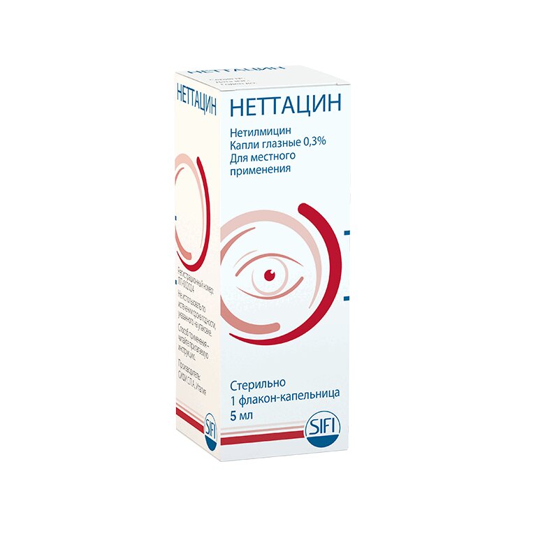 - для лечения инфекций век и наружных отделов глаза, вызванных чувствительными к нетилмицину микроорганизмами.