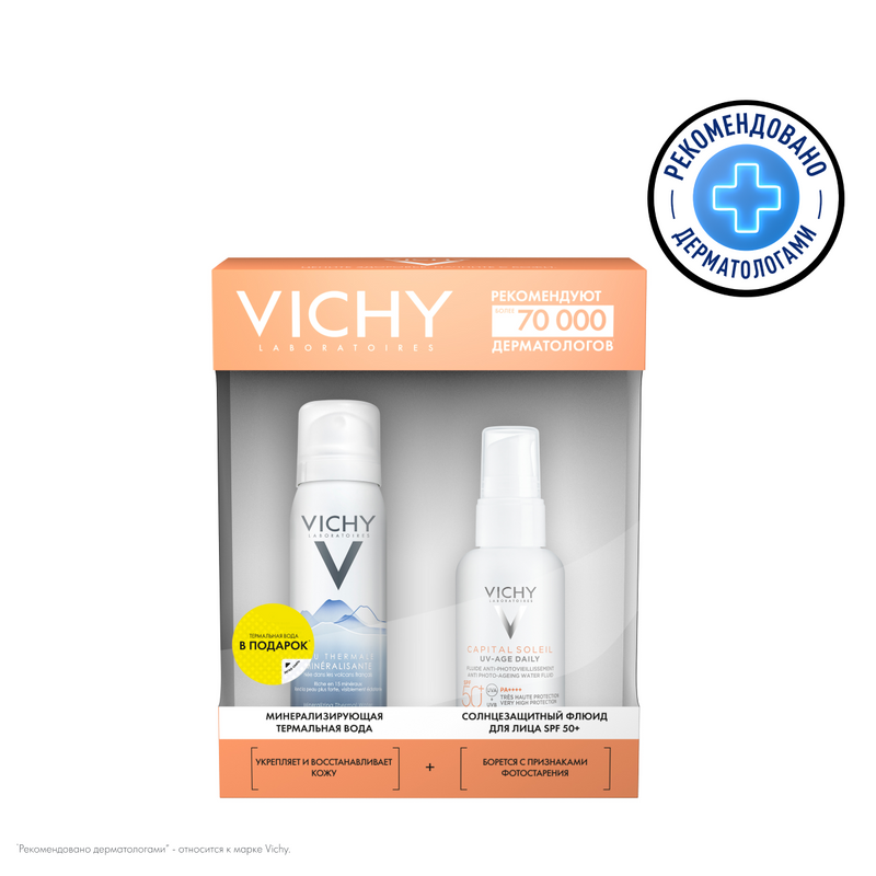 Информация о товаре Vichy Capital Soleil Набор / спрей SPF 30 200 мл + вода термальная 50 мл