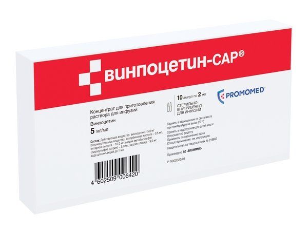 Винпоцетин-САР 5 мг/мл концентрат для приготовления раствора для инфузий ампула 2 мл 10 шт