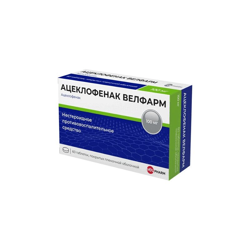 Ацеклофенак Велфарм 100 мг таблетки покрытые пленочной оболочкой 20 шт