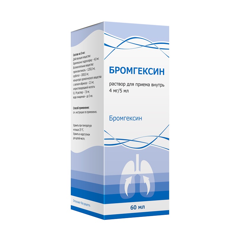 Комбинированный отхаркивающий препарат с фиксированными дозами бромгексина гидрохлорида, гвайфенезина и сальбутамола сульфата показан для симптоматической терапии продуктивного кашля, связанного с различными респираторными заболеваниями, включающими, наряду с другими, следующие: