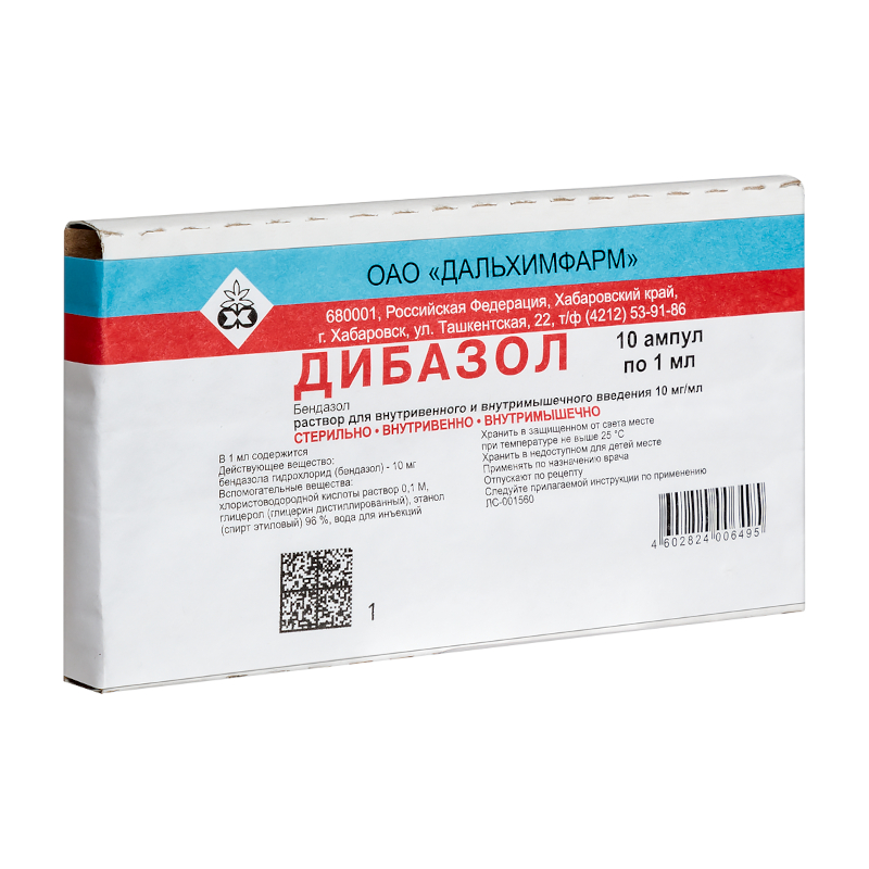 Инструкция по применению Дибазол 10 мг/мл раствор для инъекций 1 мл 10 шт