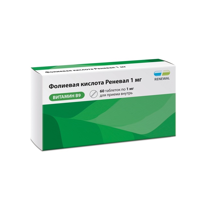 Фолиевая кислота Реневал 1 мг таблетки 60 шт