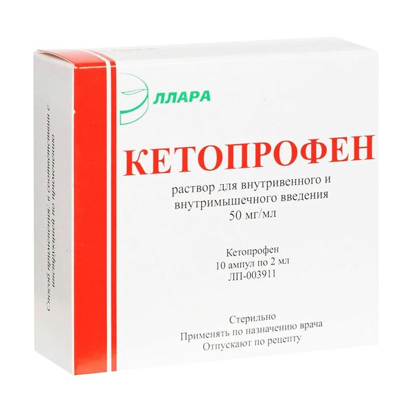 Кетопрофен 50 мг/мл раствор для внутривенного и внутримышечного введения 2 мл 10 шт Эллара