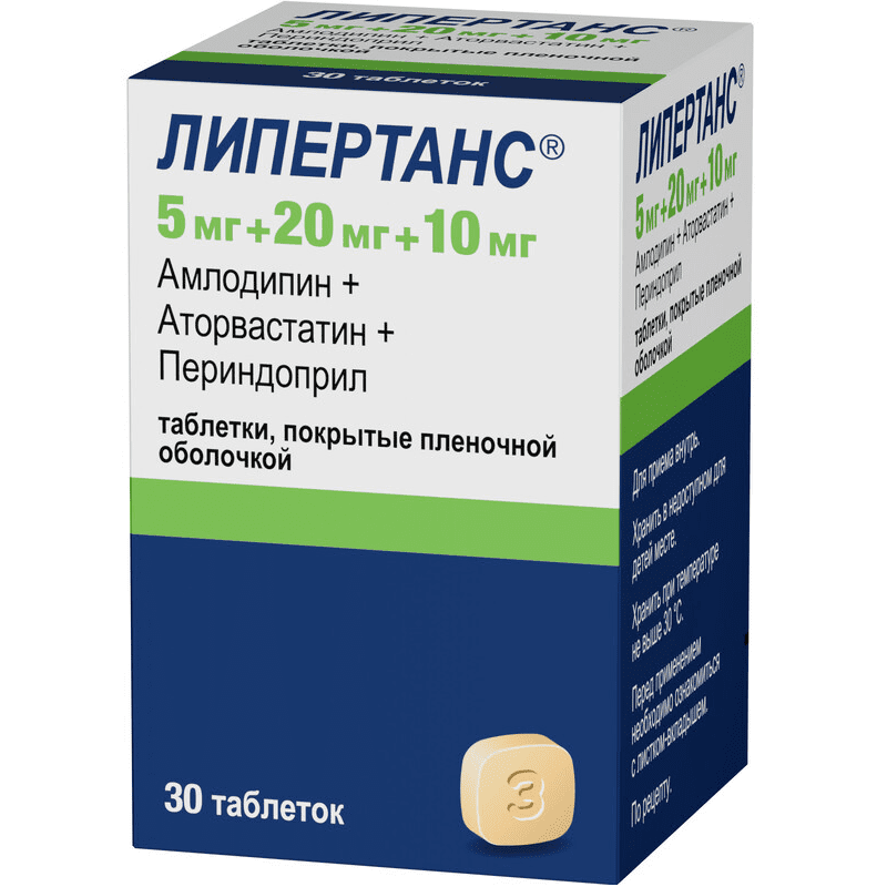 Липертанс 5 мг+10 мг+5 мг таблетки покрытые пленочной оболочкой 30 шт