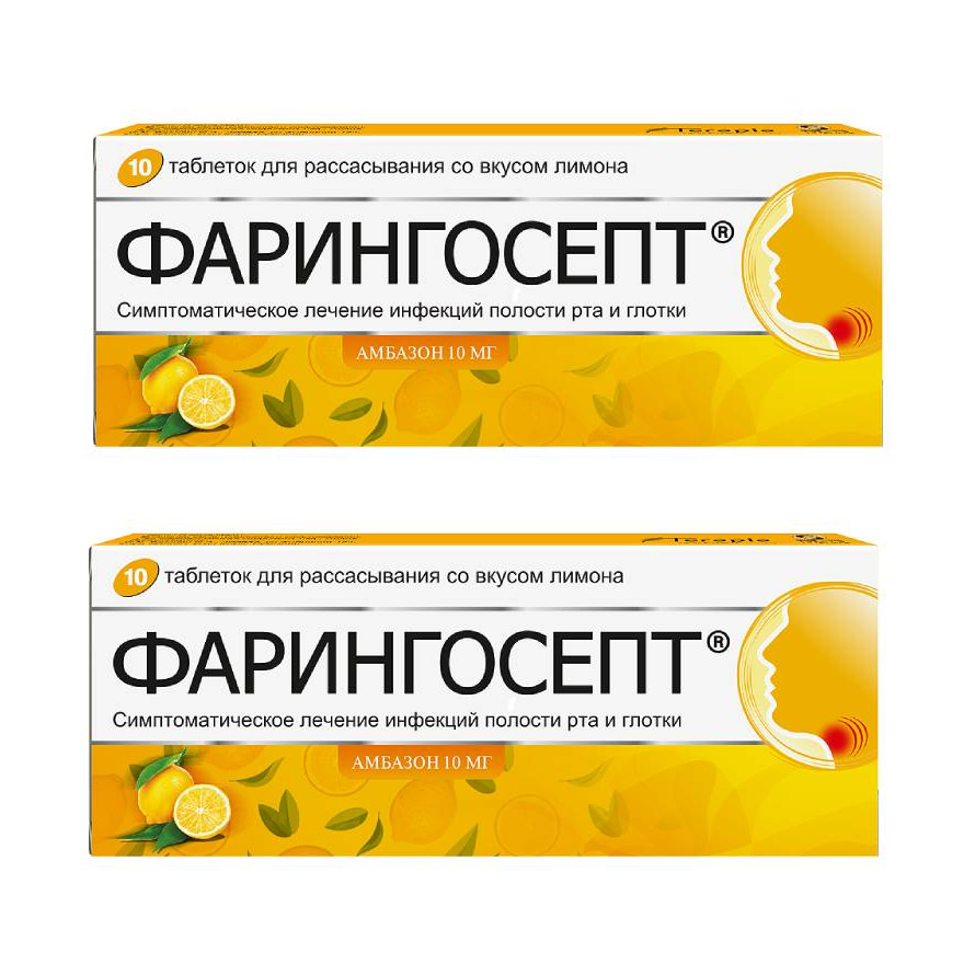 Инструкция по применению Набор 2Х Фарингосепт 10 мг таблетки для рассасывания Лимон 20 шт