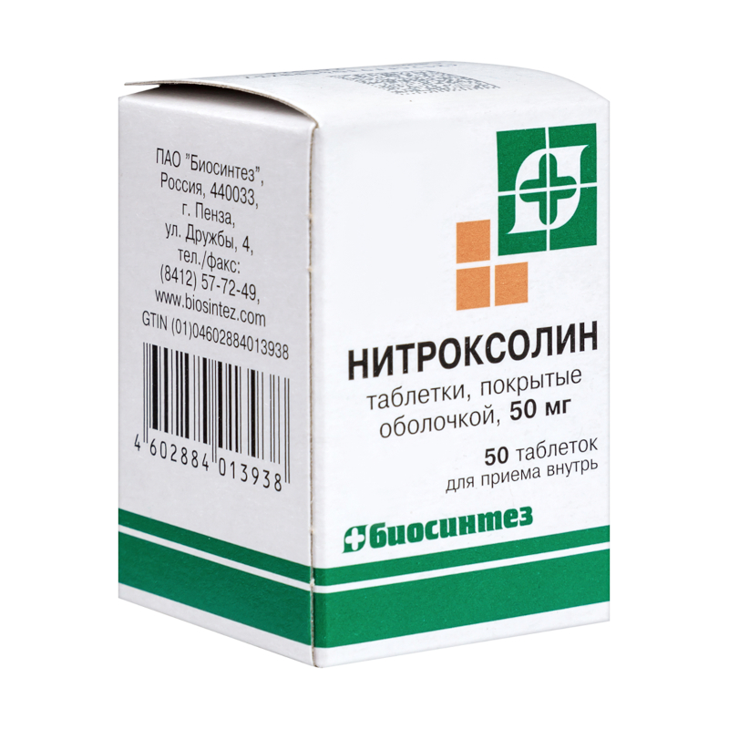 Нитроксолин 50 мг таблетки покрытые оболочкой 50 шт Биосинтез