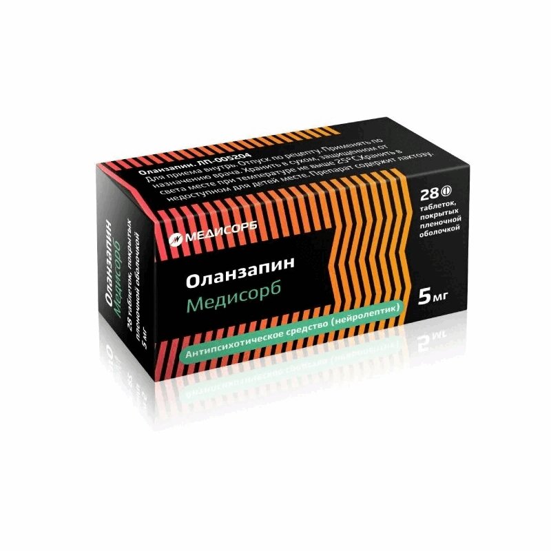 Оланзапин Медисорб таблетки покрытые пленочной оболочкой упаковка контурная 5 мг 28 шт