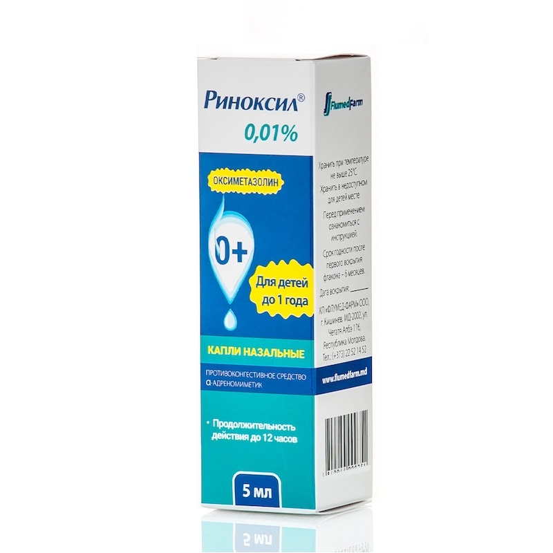 Инструкция по применению Риноксил Окси 0,01% капли назальные для детей до 1 года 5 мл