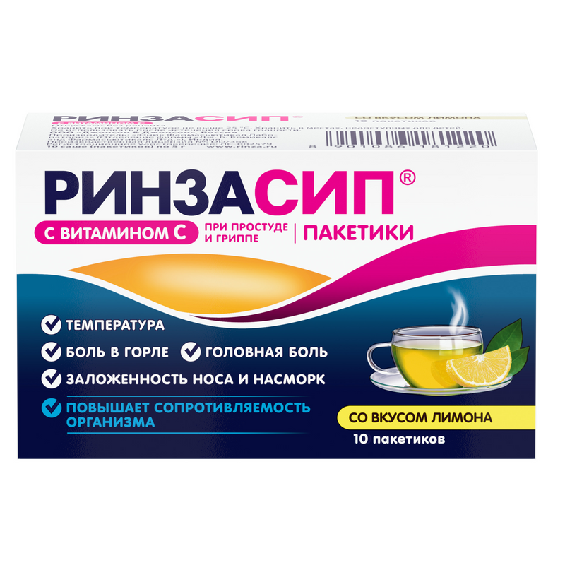 Инструкция по применению Ринзасип с витамином С порошок для приготовления раствора Лимон 5 г 10 шт
