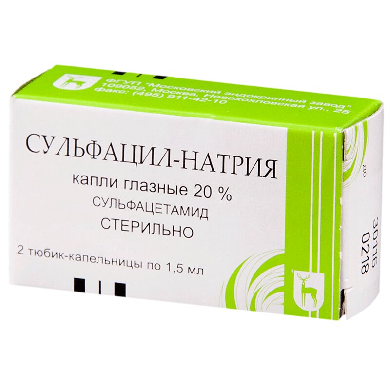 Инструкция по применению Сульфацил-натрия 20% капли глазные 1,5 мл 2 шт
