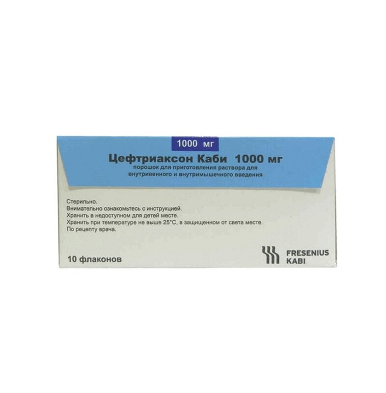 Цефтриаксон Каби 1000 мг порошок для приготовления раствора для внутривенного и внутримышечного введения 10 шт