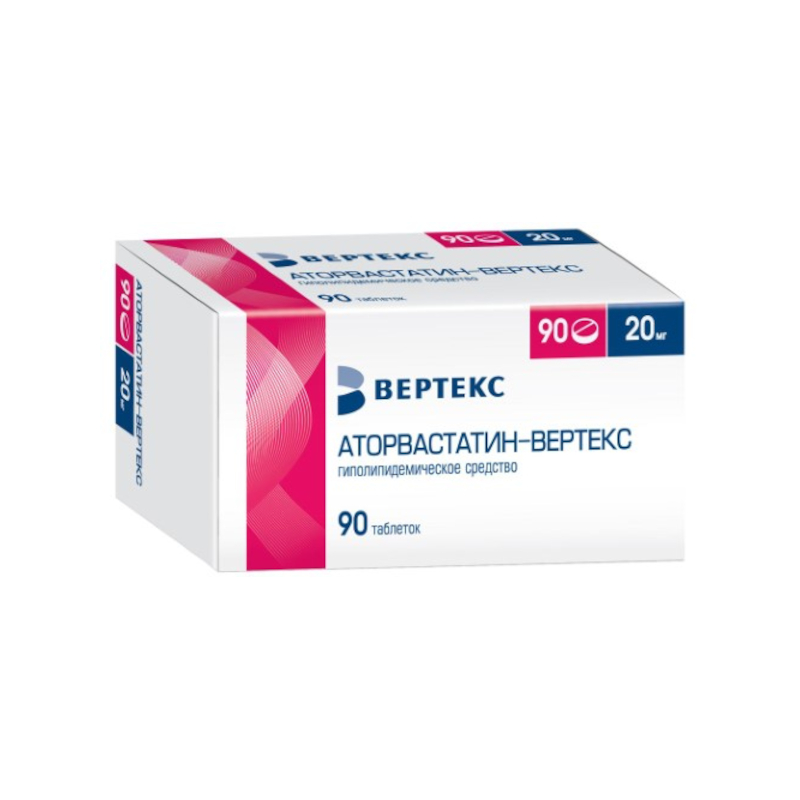 Аторвастатин-ВЕРТЕКС 20 мг таблетки покрытые пленочной оболочкой 90 шт