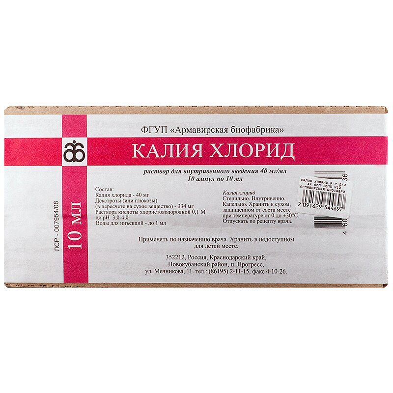 Калия хлорид 40 мг/мл концентрат для приготовления раствора для инфузий 10 мл 10 шт