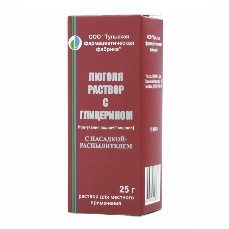 Люголя раствор с глицерином для местного применения флакон с распылителем 25 г 1 шт Тульская фармацевтическая фабрика