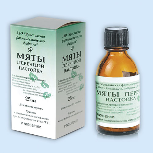 настойка листьев мяты перечной (50 г растительного сырья на 1 л настойки) 25 мл