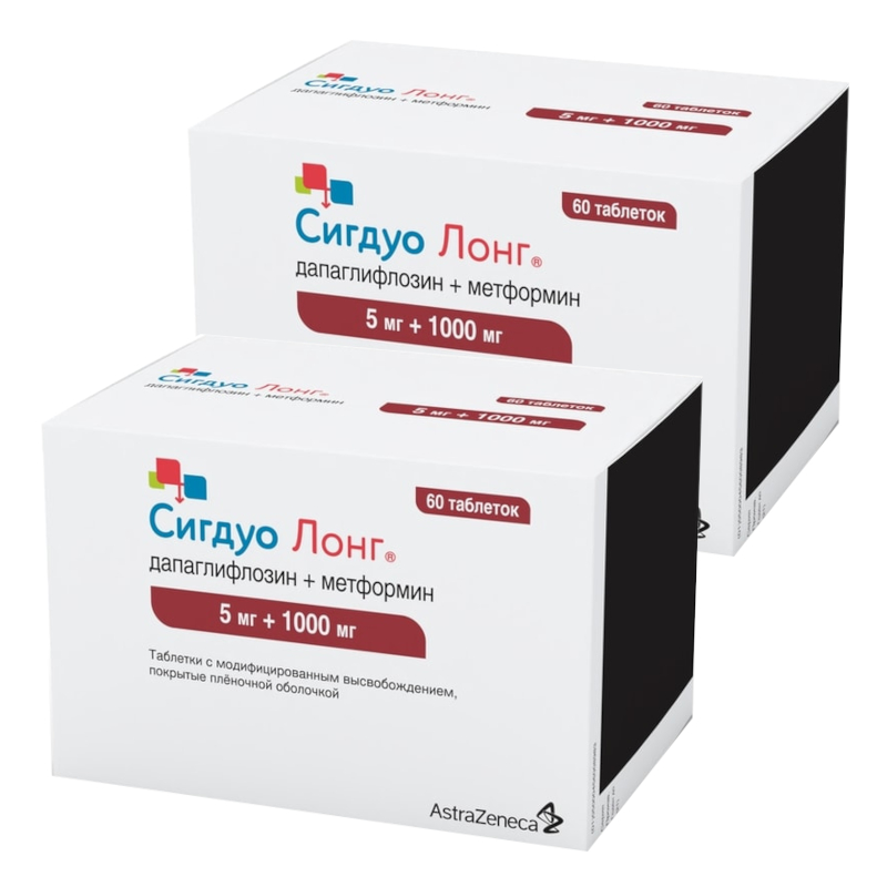 Набор 2Х Сигдуо Лонг 5 мг+1000 мг таблетки покрытые пленочной оболочкой с модифицированным высвобождением 60 шт