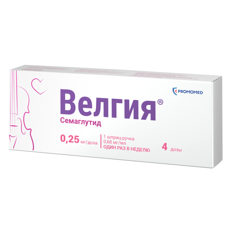 В отличие от нативного ГПП-1, продленный Т1/2 семаглутида (около 1 недели) позволяет применять его п/к 1 раз в неделю. Связывание с альбумином является основным механизмом длительного действия семаглутида, что приводит к снижению выведения его почками и защищает от метаболического распада. Кроме того, семаглутид стабилен в отношении расщепления ферментом дипептидилпептидазой-4.