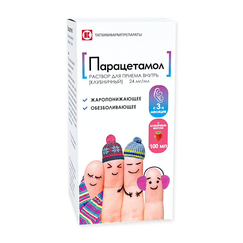Парацетамол 24 мг/мл раствор для приема внутрь Клубника 100 мл 1 шт Татхимфармпрепараты