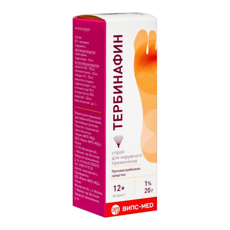 Инструкция по применению Тербинафин 1% спрей для наружного применения 20 г