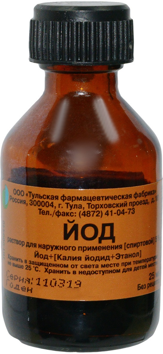 Инструкция по применению Йод 5% раствор спиртовой для наружного применения 25 мл