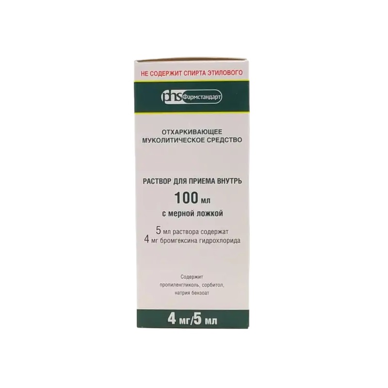 Бромгексин 4 мг/5 мл раствор для приема внутрь 100 мл 1 шт Фармстандарт