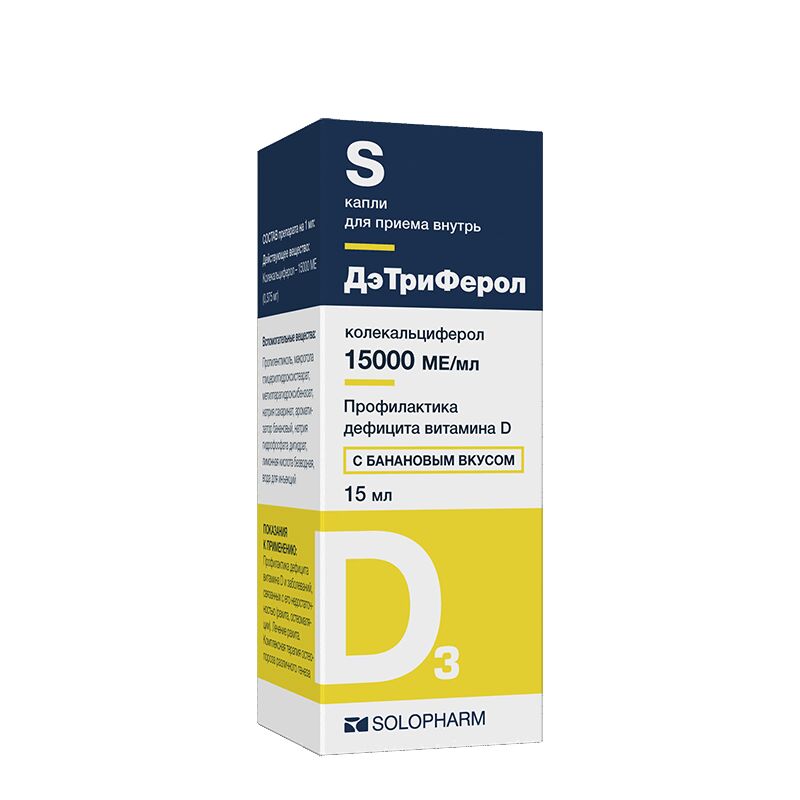 Инструкция по применению ДэТриФерол 15000 МЕ/мл капли для приема внутрь Банан 15 мл
