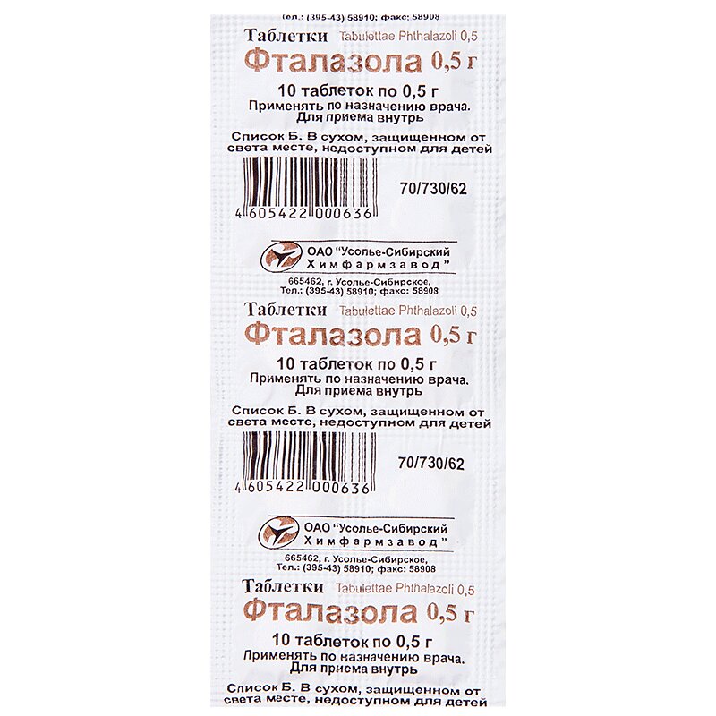 Фталазол 500 мг таблетки 10 шт Усолье-Сибирский ХФЗ