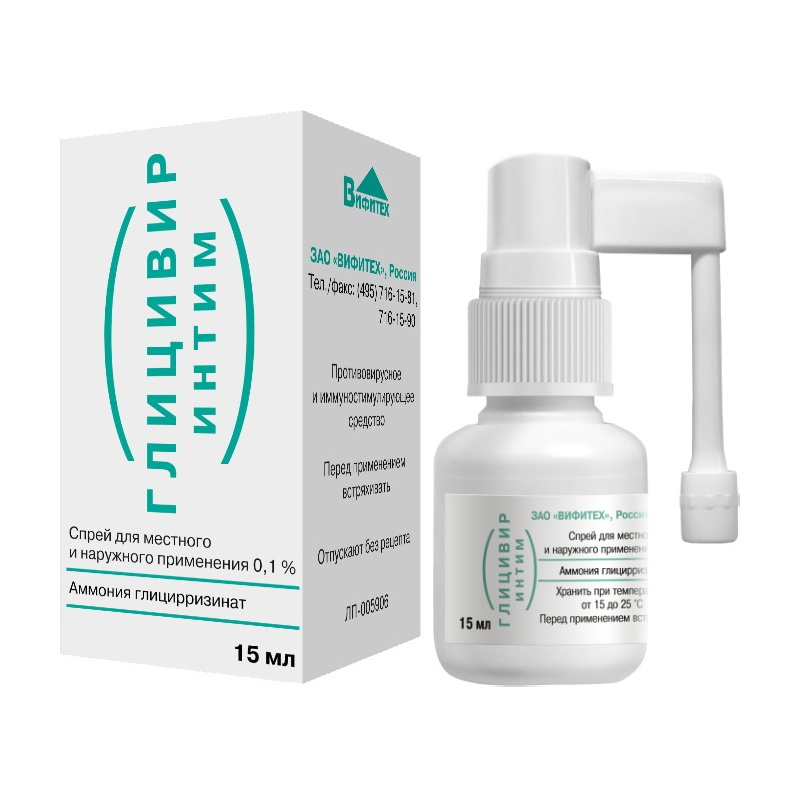 Глицивир Интим 0,1% спрей для местного и наружного применения 15 мл 1 шт