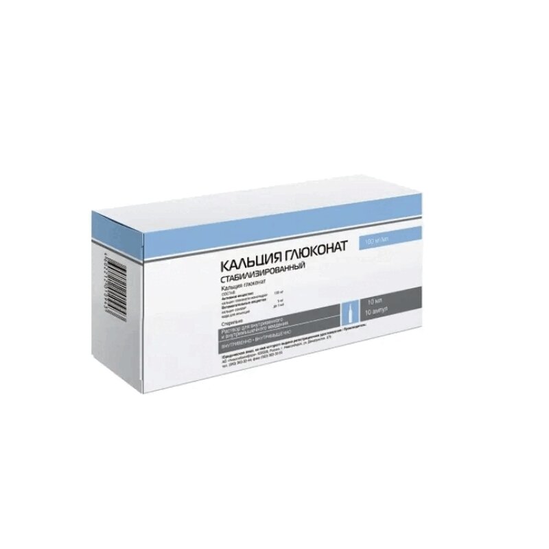 Кальция глюконат стабилизированный 100 мг/мл раствор для внутривенного и внутримышечного введения ампула 10 мл 10 шт