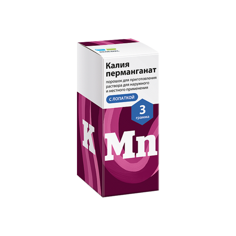 Калия перманганат порошок для приготовления раствора для местного и наружного применения 3 г 1 шт Реневал
