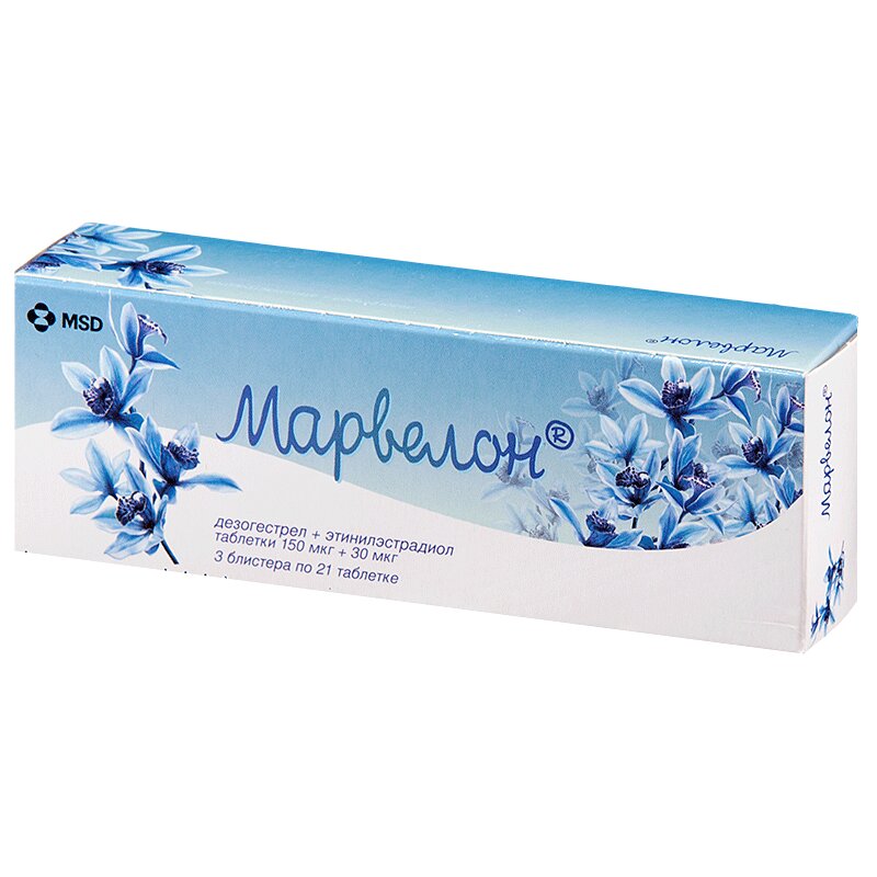 Инструкция по применению Марвелон 150 мкг+30 мкг таблетки 21 шт