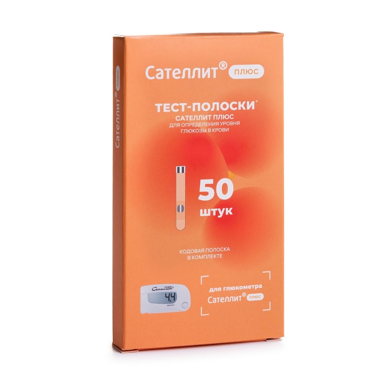 Тест-полоски «Сателлит Плюс» предназначены для определения концентрации уровня глюкозы в цельной крови человека. ВНИМАНИЕ!!! Тест-полоски «Сателлит Плюс» применяются ТОЛЬКО для Глюкометра «Сателлит Плюс»! ХАРАКТЕРИСТИКИ Полоски в индивидуальной упаковке, на которой написан срок годности и код полоски. Объем крови - 4-5 мкл Время измерения 20 секунд. Требуется точность в нанесении капли крови на полоски. • Диапазон измерений от 0,6 до 35,0 ммоль/л • Принцип измерения электрохимический • Калибровка измерений по цельной капиллярной крови • Температура хранения от -20 °С до +30 °С • Температура эксплуатации от +18 °С до +35 °С • Срок годности 24 мес. Каждая тест-полоска предназначена только для однократного применения. Не используйте их повторно. Особые условия Не используйте тест-полоски после истечения срока годности, указанного на упаковке. Не сгибайте, не разрезайте и не деформируйте тест-полоски. Тест-полоски для Глюкометра «Сателлит Плюс» - 25 штук в индивидуальной упаковке. Кодовая полоска в комплекте.