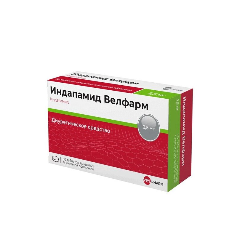 Индапамид Велфарм таблетки покрытые пленочной оболочкой упаковка контурная 2,5 мг 50 шт