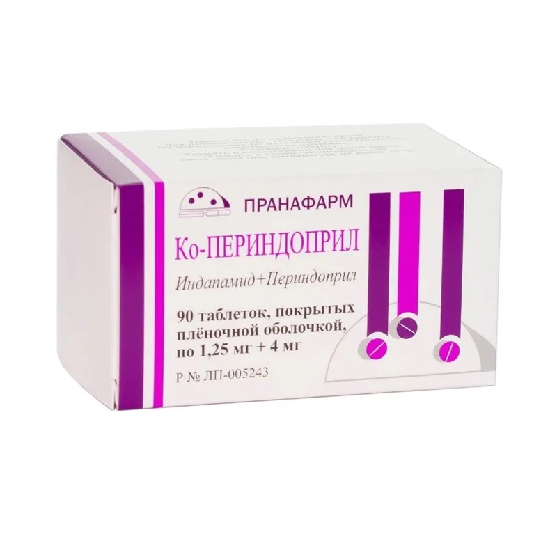 Ко-Периндоприл таблетки покрытые пленочной оболочкой упаковка контурная 1,25 мг+4 мг 90 шт