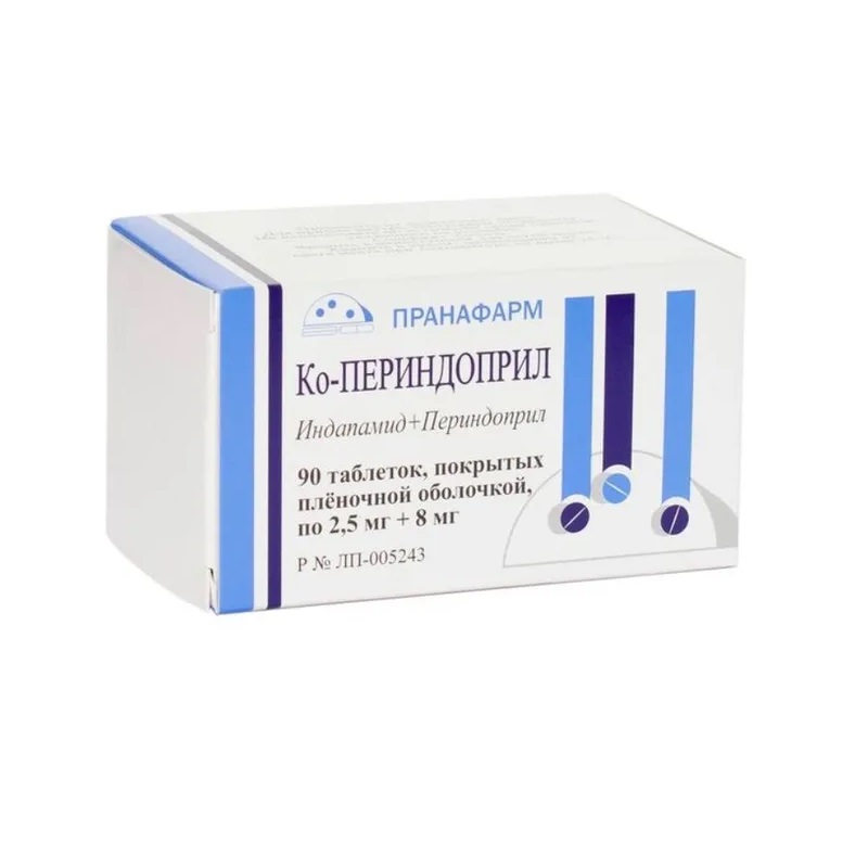 Инструкция по применению Ко-Периндоприл таблетки 2,5 мг+8 мг 90 шт