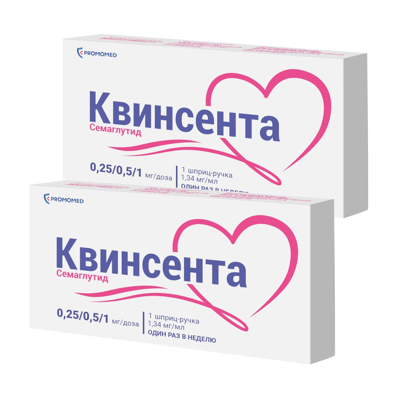 Цены на Набор 2Х Квинсента 1,34 мг/мл раствор для инъекций 0,25/0,5/1 мг/доза шприц-ручка 3 мл + иглы в аптеках Пскова