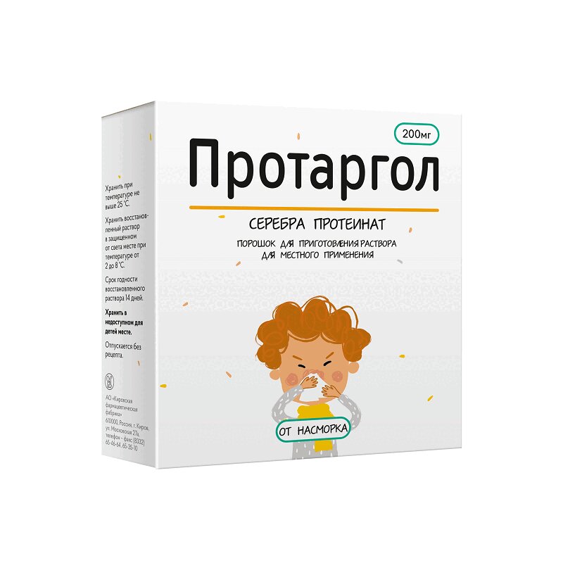 Протаргол 200 мг порошок для приготовления раствора для местного применения 1 шт + растворитель 10 мл 1 шт