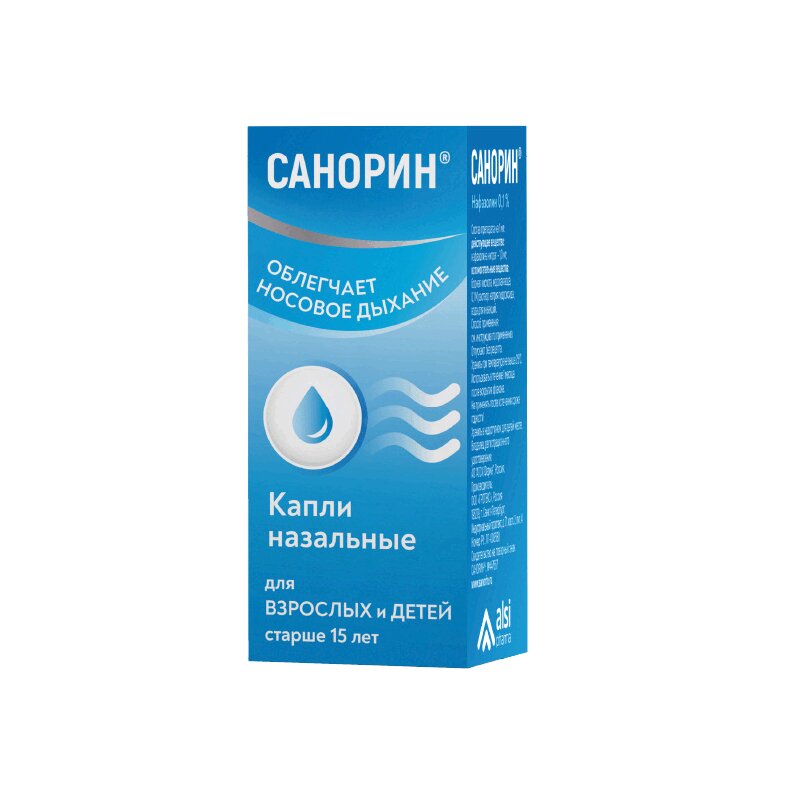 Инструкция по применению Санорин 0,1% капли назальные 10 мл