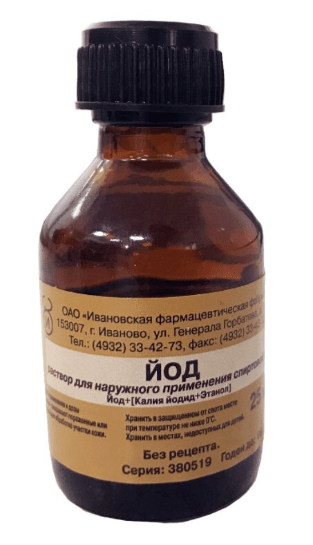 Йод 5% раствор спиртовой для наружного применения 25 мл 1 шт Ивановская фармацевтическая фабрика