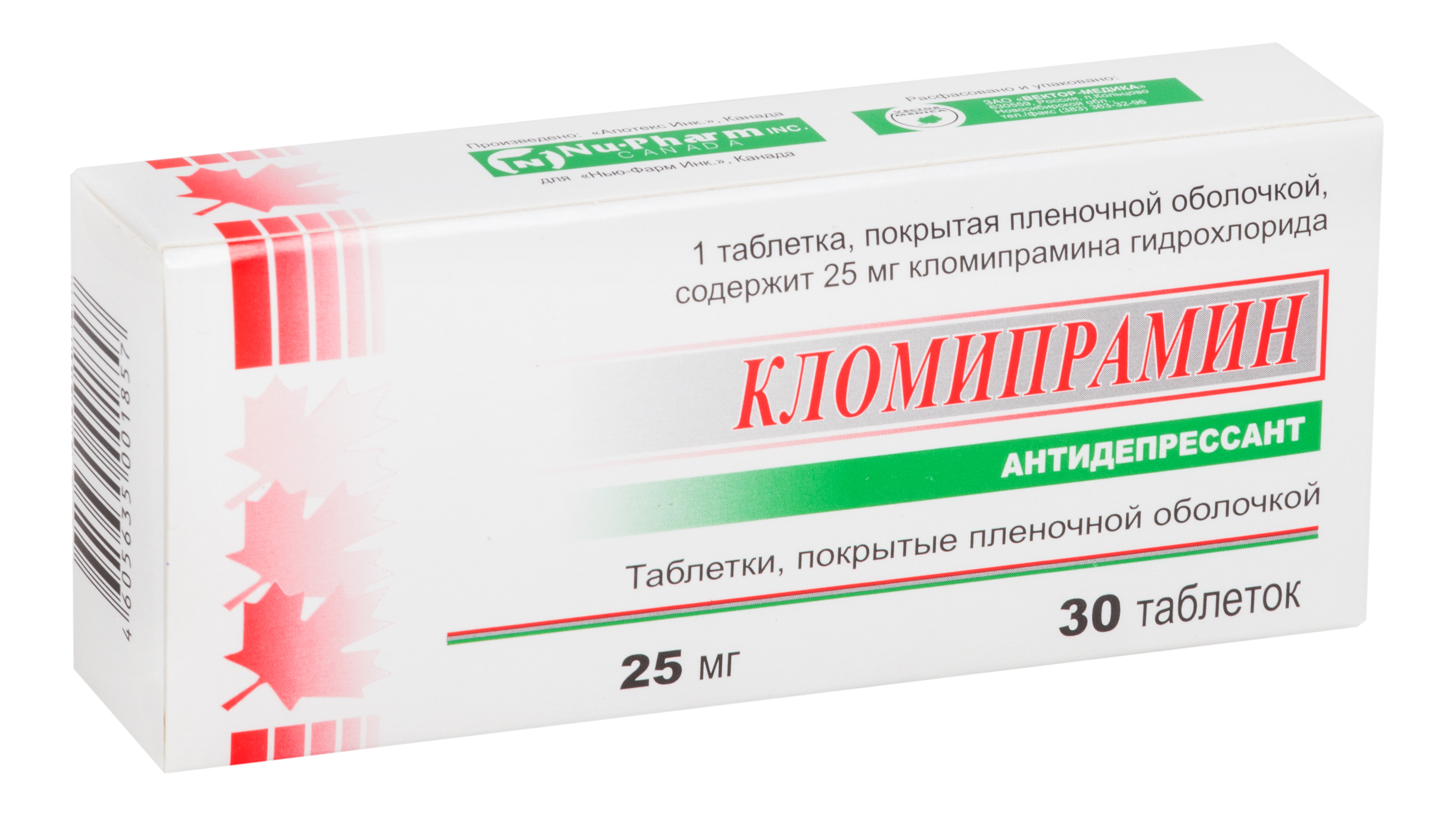 Кломипрамин таблетки покрытые пленочной оболочкой упаковка контурная 25 мг 30 шт