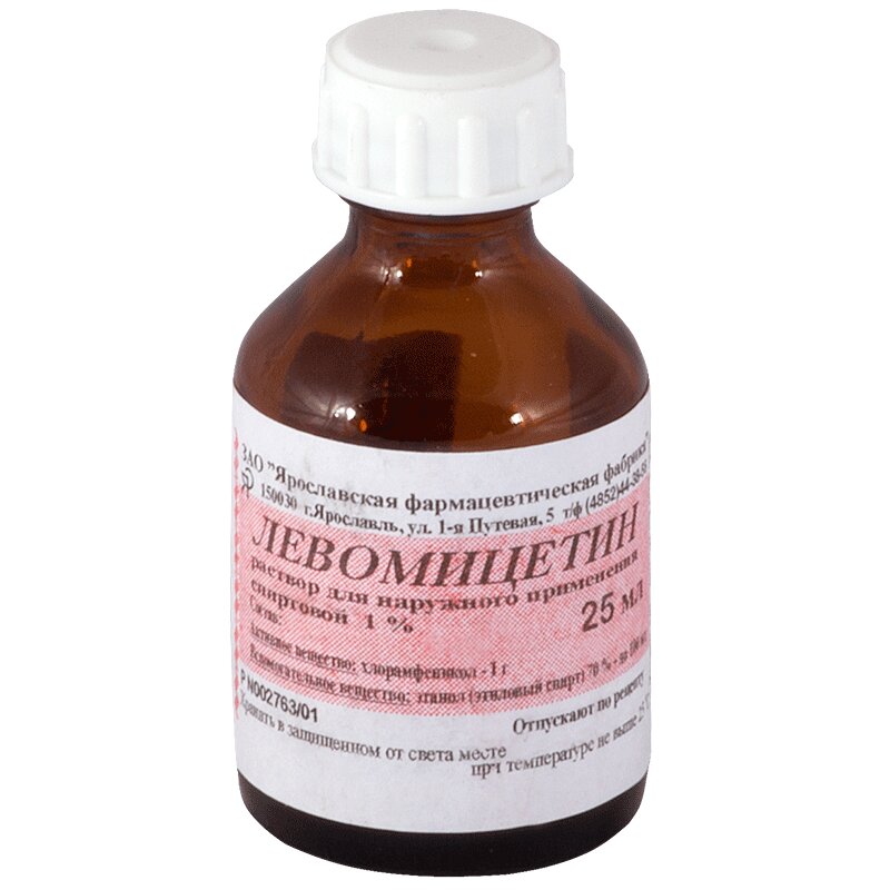 Левомицетин 1% раствор спиртовой для наружного применения 25 мл 1 шт Ярославская фармацевтическая фабрика