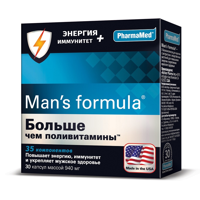 Инструкция по применению Man's formula Больше чем поливитамины Энергия+Иммунитет капсулы 60 шт
